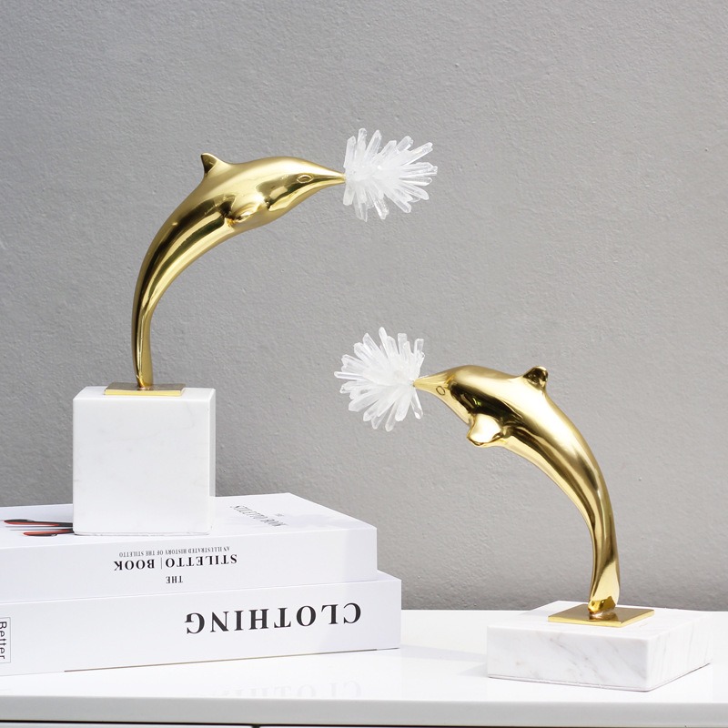 Cá heo trang trí được làm từ đá thạch anh và kim loại mạ cao cấp