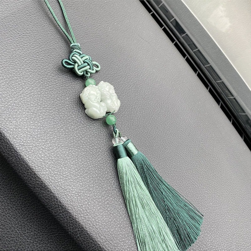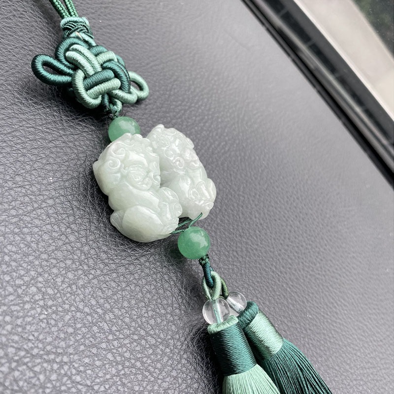 - Ý nghĩa phong thủy sâu sắc: Dây treo mặt Tỳ Hưu ngọc bích không chỉ là món đồ trang trí xe mà còn mang lại sự bình an, tài lộc và may mắn cho chủ sở hữu, tạo ra không gian phong thủy tốt trong xe.