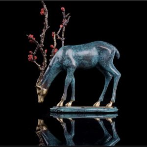 Đôi hươu hoa anh đào bằng đồng với kiểu dáng nghệ thuật trang trí nội thất