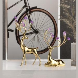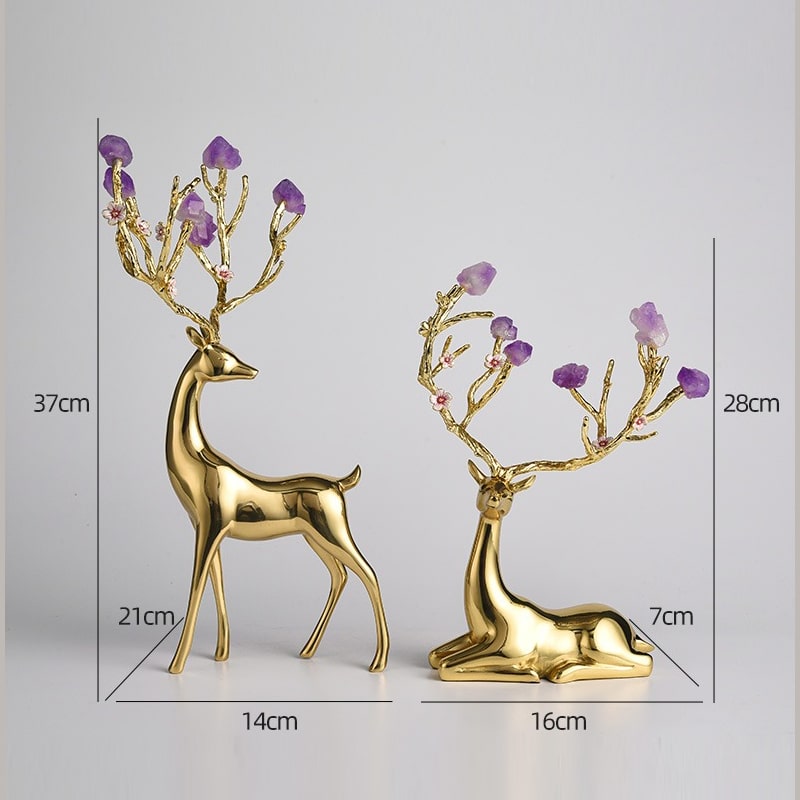 Hươu Sika gắn đá thạch anh tím