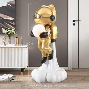 Mẫu phi hành gia cầm bóng cưỡi tên lửa để sàn màu vàng