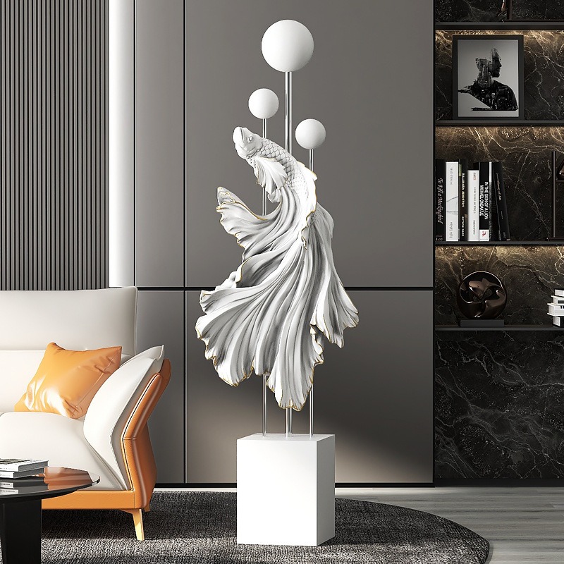 Mô hình cá Betta để sàn với tông màu trắng bạc