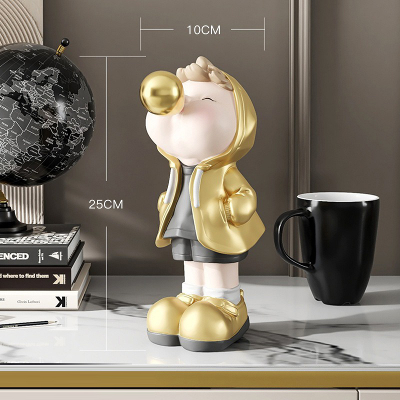 Tượng cậu bé thổi bóng decor phòng khách đẹp