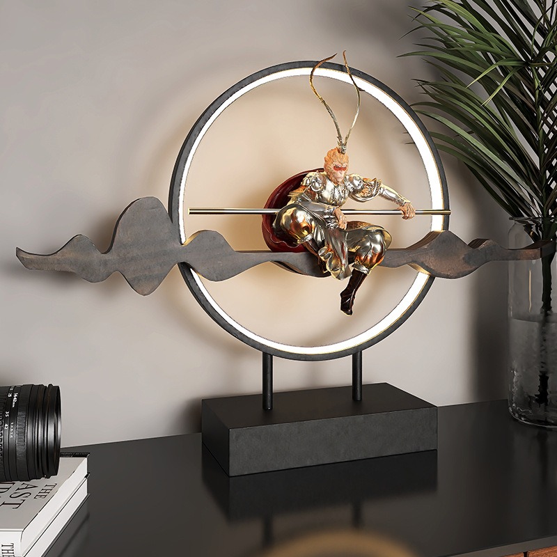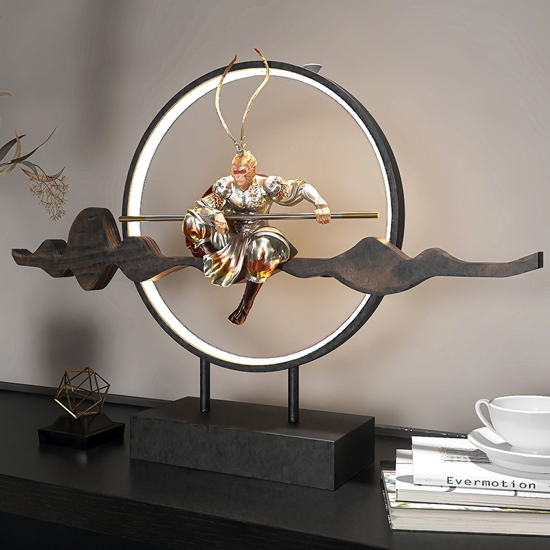 Tượng Tôn Ngộ Không Đấu chiến thắng Phật để bàn kết hợp đèn Led.
