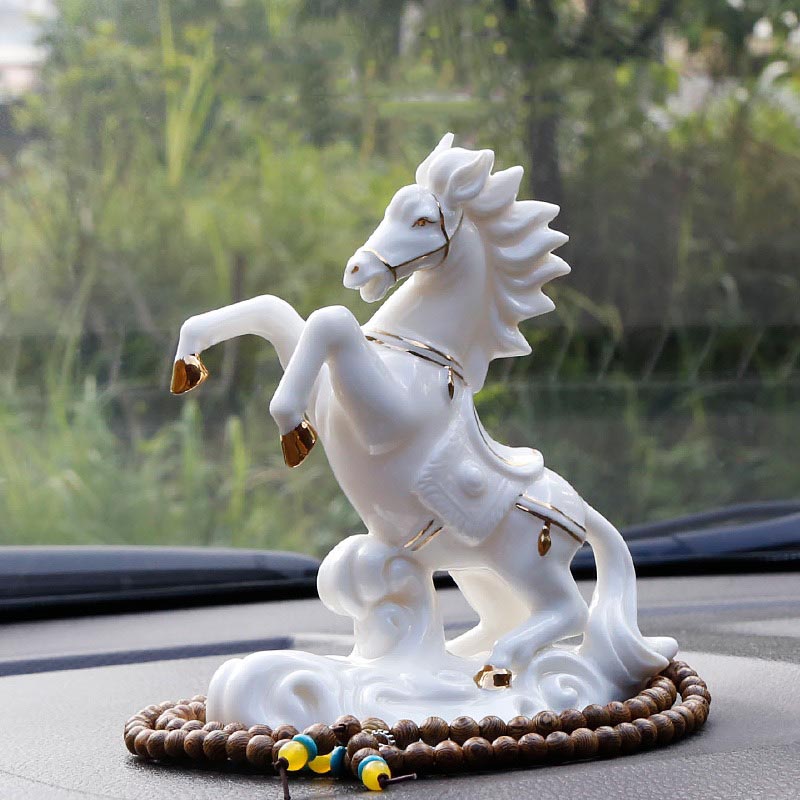 Tượng ngựa phong thủy đặt oto chất liệu gốm sứ