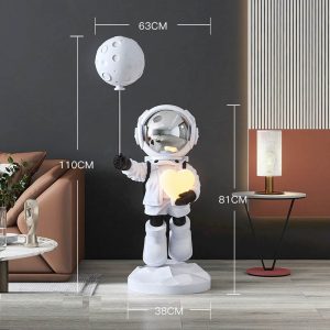 Với kích thước này, tượng phi hành gia không chỉ phù hợp với phòng khách rộng rãi mà còn có thể được đặt trong các không gian khác như phòng làm việc, phòng chờ hoặc các không gian trưng bày nghệ thuật, giúp tăng thêm phần sang trọng và độc đáo cho không gian của bạn.